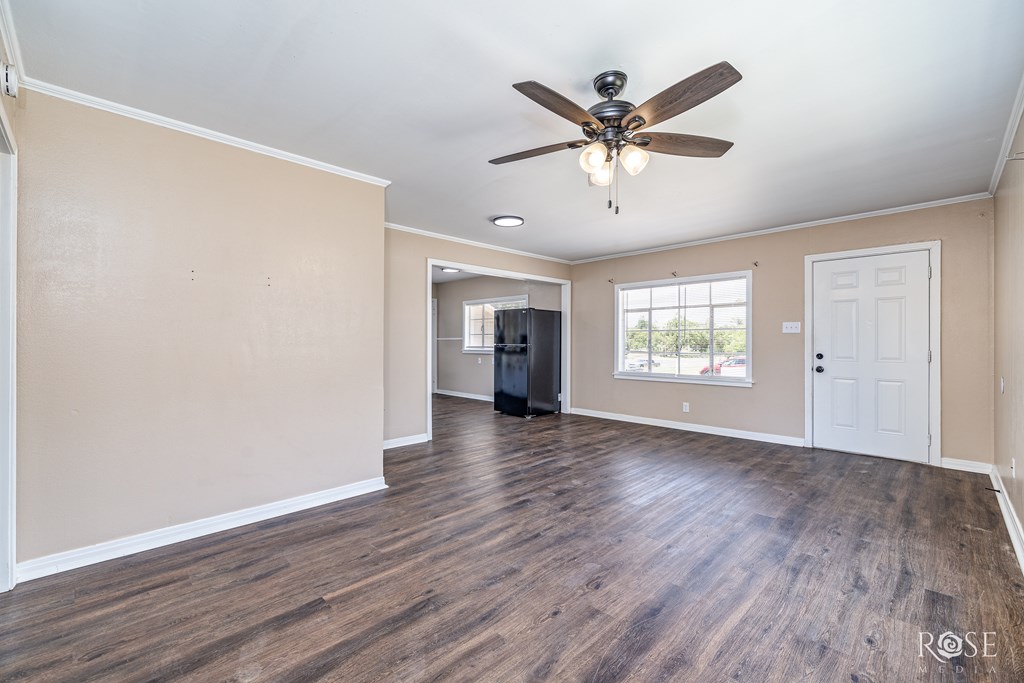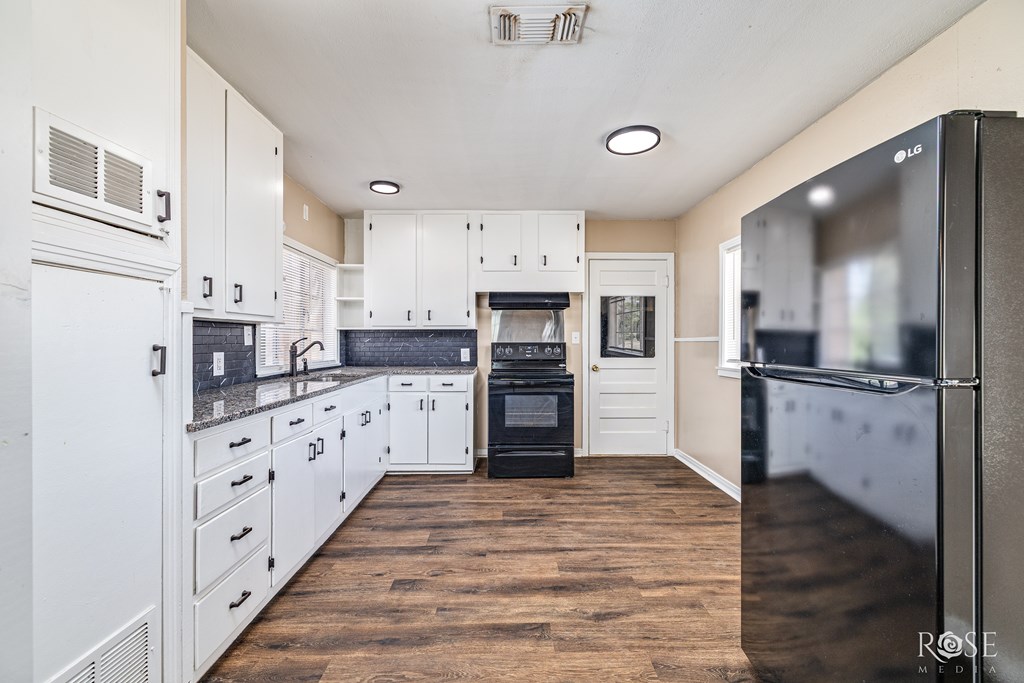 Remodeled in 2023, this 3-bedroom, 1-bath home offers 1,105 sq ft of clean, comfortable living space. It features central AC and heat, beautiful vinyl plank flooring, and a recently installed roof in 2024. The kitchen comes equipped with a granite countertop, stove/oven and refrigerator. A large fenced yard, covered patio, and 1-car garage add to the appeal. Move-in ready and easy to maintain.