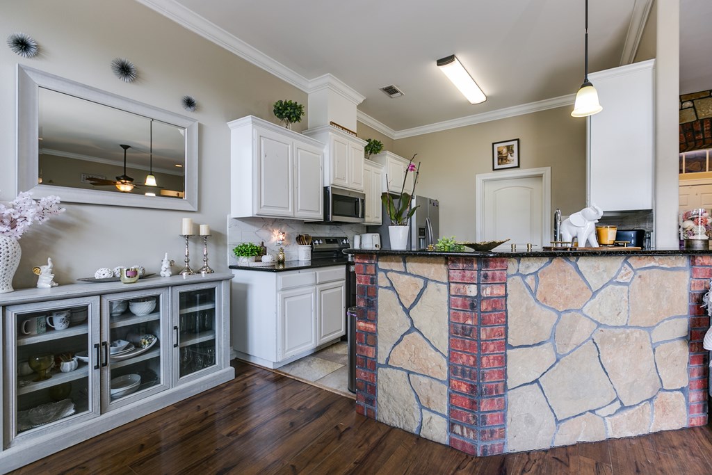 A Perfect Family Retreat! Welcome to this beautiful 4-bedroom, 2-bath home in Buffalo Heights, where comfort and style meet. The stunning stone exterior sets the tone as you enter the inviting living space, complete with stone accents that add warmth and character throughout the home. The kitchen is a chef's dream, featuring elegant cabinetry and gorgeous granite countertops. Step outside to discover your own private oasis! The expansive 35x30 workshop is equipped with 220-volt electricity, offering endless possibilities for hobbies or projects. The carport provides convenient covered parking, and the spacious patio area is perfect for relaxing or entertaining. The front yard showcases low-maintenance landscaping designed by Scherz, giving the home great curb appeal with minimal upkeep. All of this sits on a generous 1-acre lot, offering plenty of room to roam and enjoy the outdoors. Don't miss out on this beautiful home with all the amenities. Call to schedule your showing today.